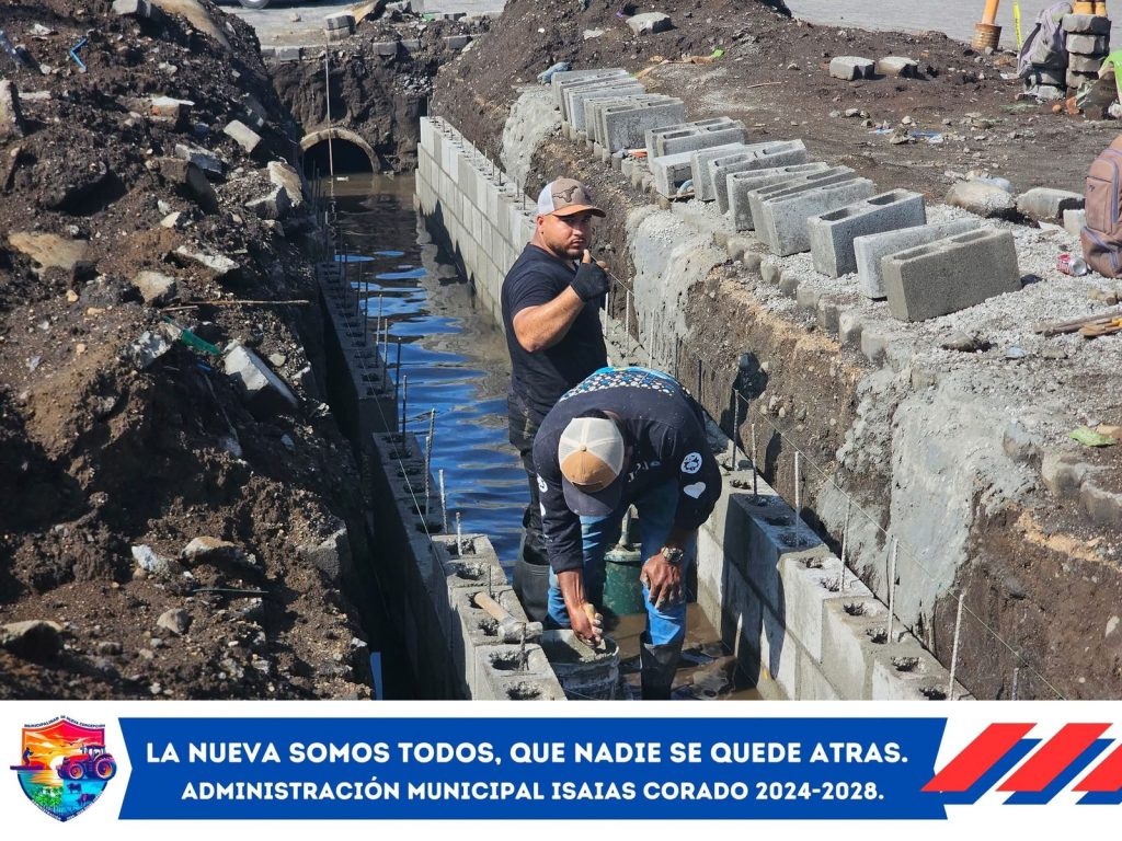 La Municipalidad de Nueva Concepción continúa con los trabajos de construcción del drenaje tipo bóveda en la calle principal del Mercado Terminal. Este importante proyecto tiene como objetivo principal el desfogue adecuado de aguas usadas y pluviales, beneficiando directamente a los comerciantes y vecinos del sector.