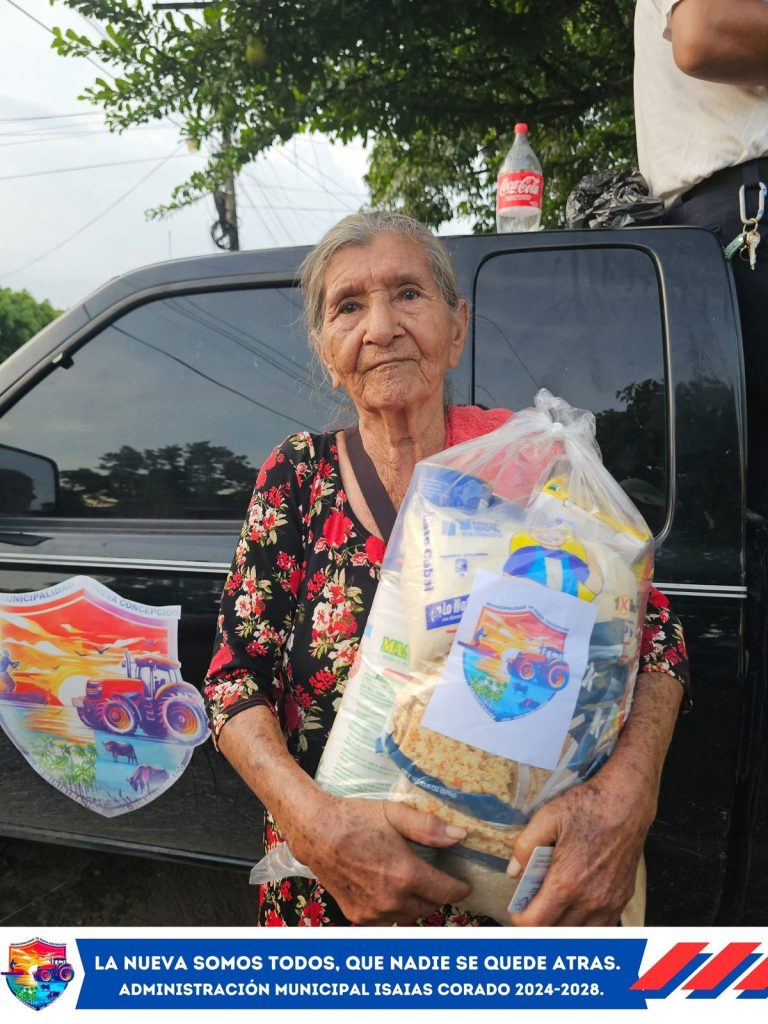 El Señor Alcalde Municipal Isaías Corado, su esposa Ester Sánchez de Corado, Primera Dama del Municipio, y la Dirección Municipal de la Mujer, realizaron la entrega de 100 bolsas de víveres en la aldea San José Mogollón.