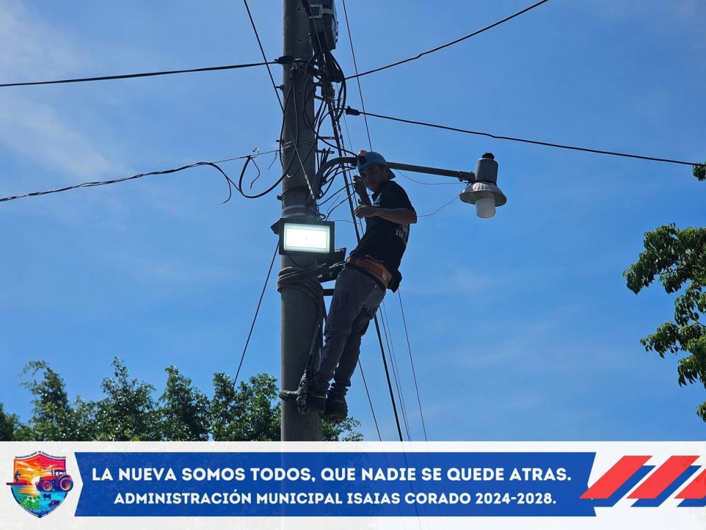 Personal de Servicio Público realizó la instalación 10 de reflectores de 150 watts en la calle Buena Vista hacia Estrella del Sur, gracias a la donación del vecino Mateo Asencio, quien contribuyó con estos equipos para mejorar la iluminación y seguridad del sector.
