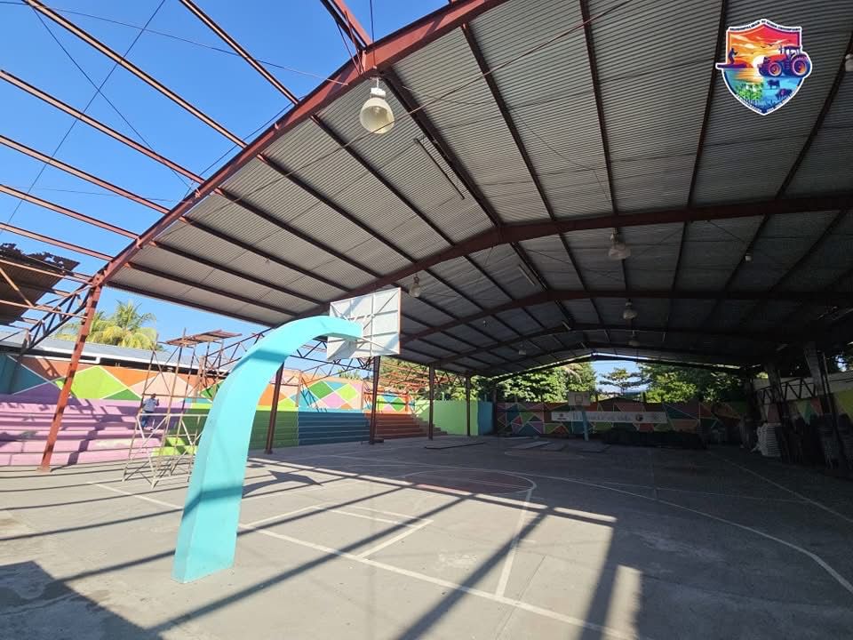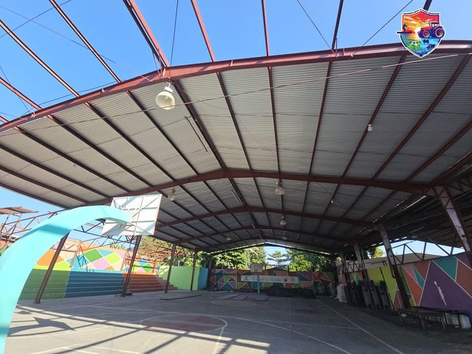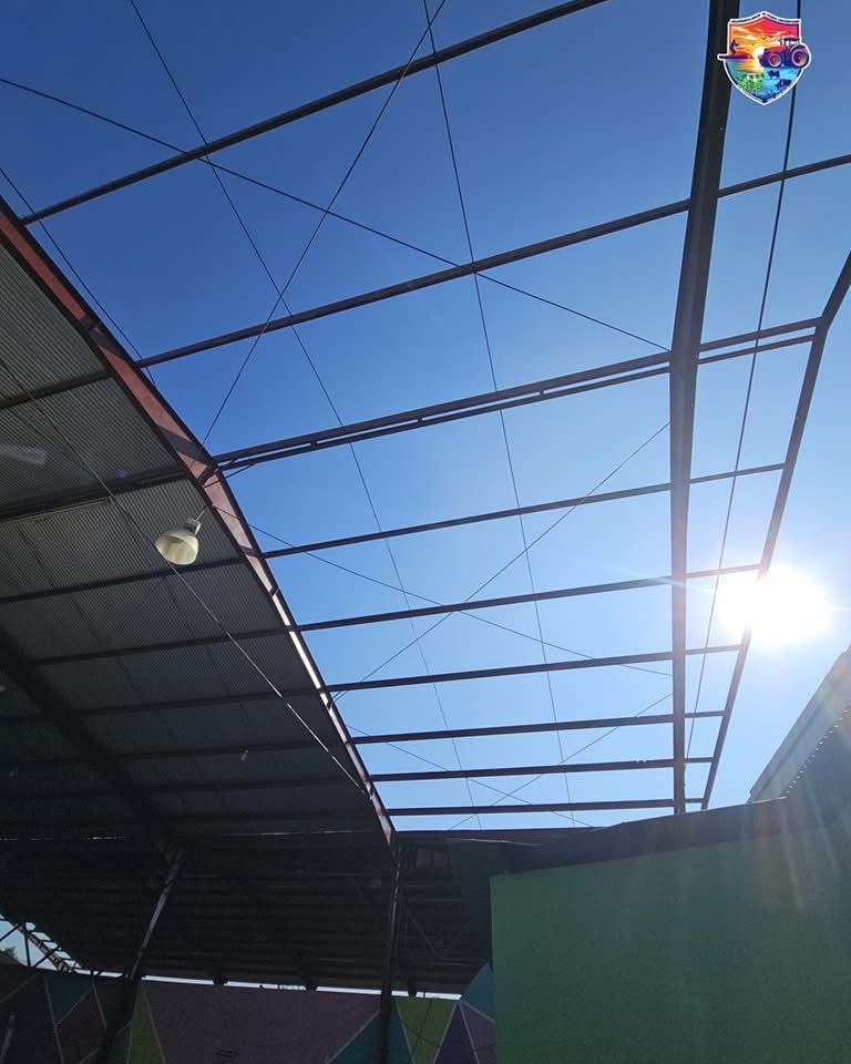 Continúan los trabajos de instalación de un nuevo techo en la estructura del gimnasio municipal, mejorando las instalaciones en beneficio de los deportistas que practican básquetbol y otras actividades en este espacio.