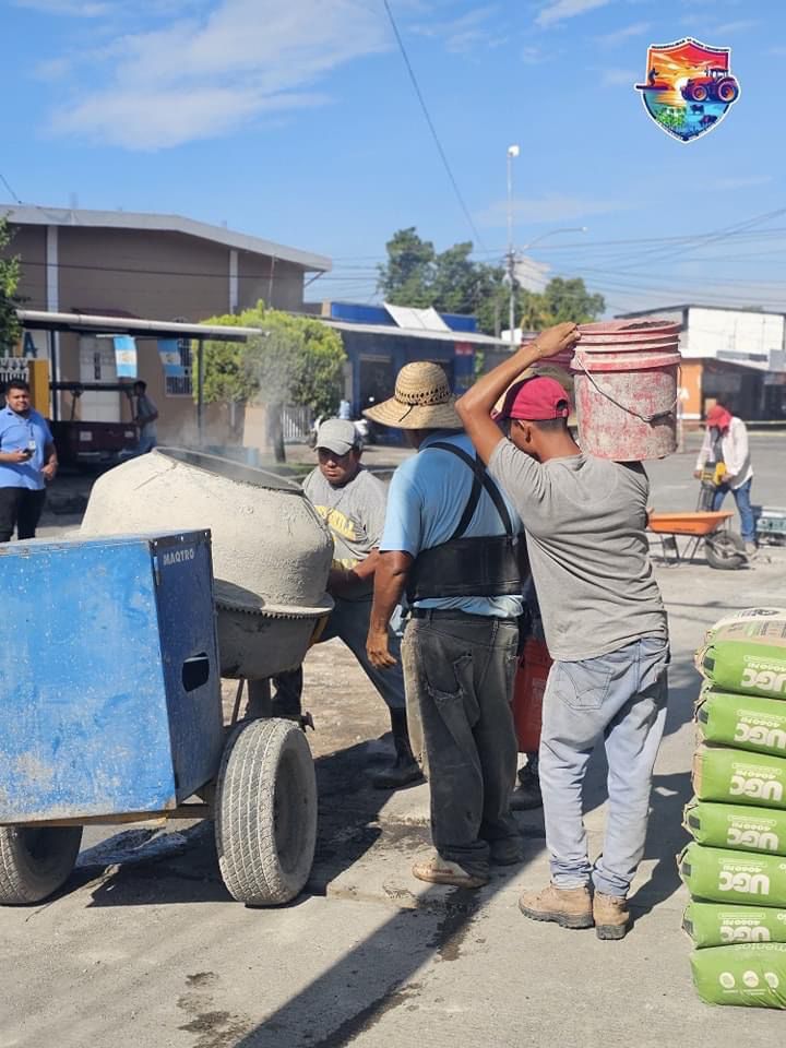 Se continúa trabajando en el mejoramiento de la calle central del casco urbano. Esta vez, se están realizando trabajos de reparación con material de concreto para cubrir un orificio en dicho sector, con el fin de garantizar la seguridad y mejorar la movilidad vehicular.