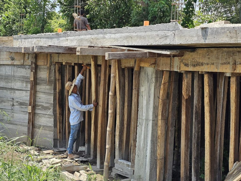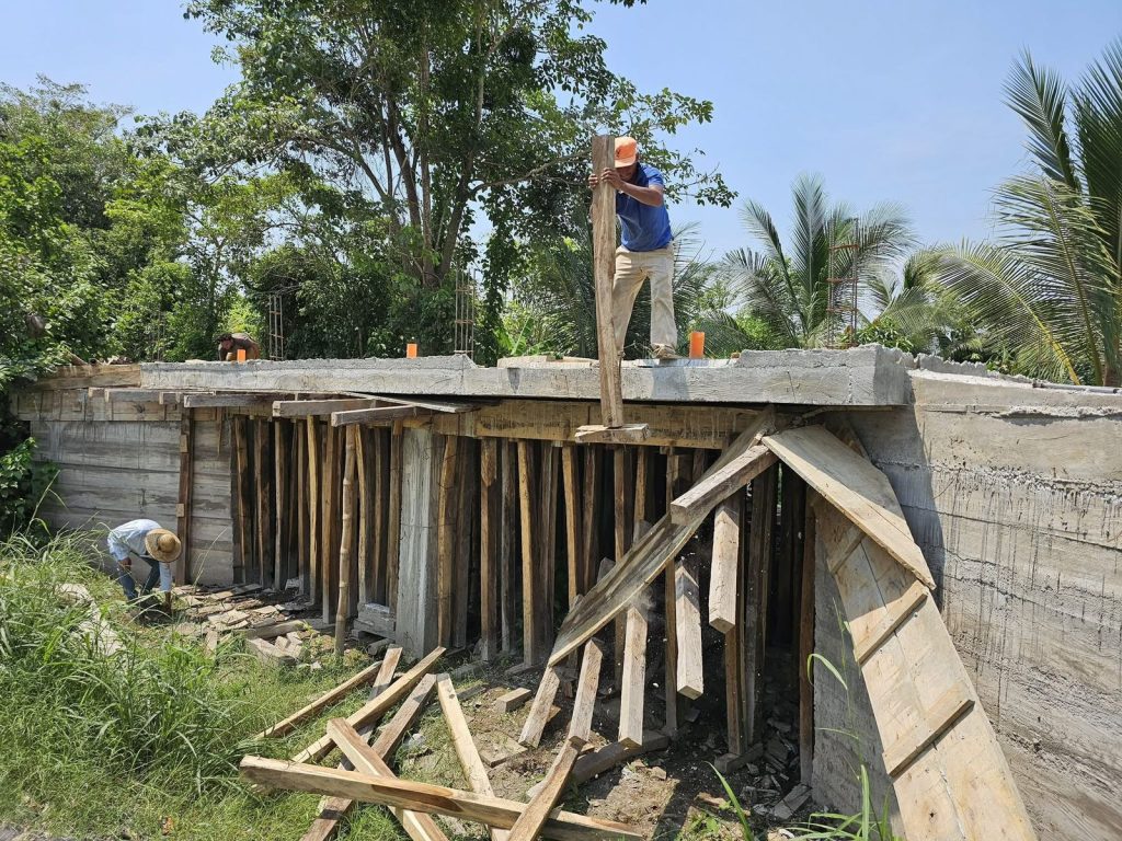 Se continúa trabajando en la construcción del puente ubicado en trocha 8 calle 11, nuestro equipo de Albañiles inician a retirar la madera utilizada para la fundición y se iniciará a trabajar los aletones del puente.