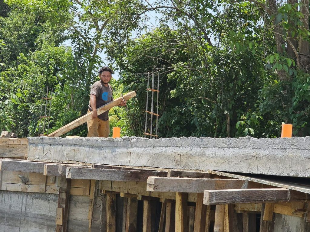 Se continúa trabajando en la construcción del puente ubicado en trocha 8 calle 11, nuestro equipo de Albañiles inician a retirar la madera utilizada para la fundición y se iniciará a trabajar los aletones del puente.